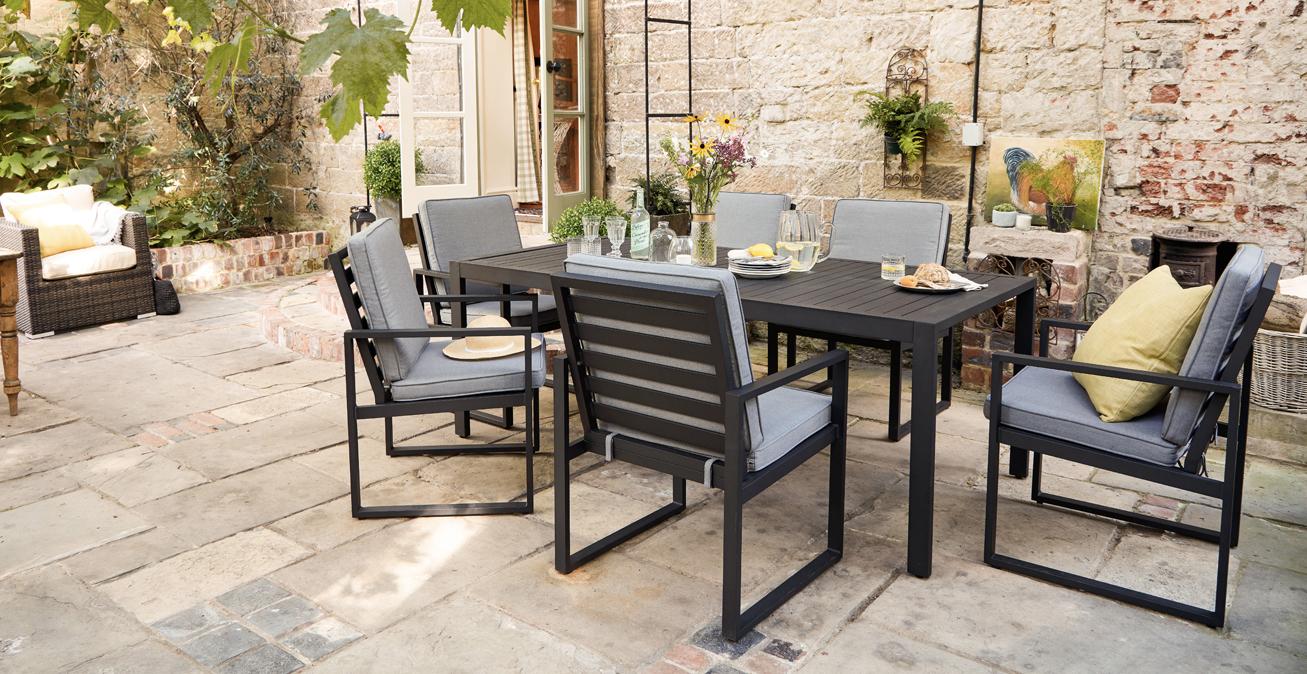 Choose from tables, sofas, swing seats, benches & dining sets!